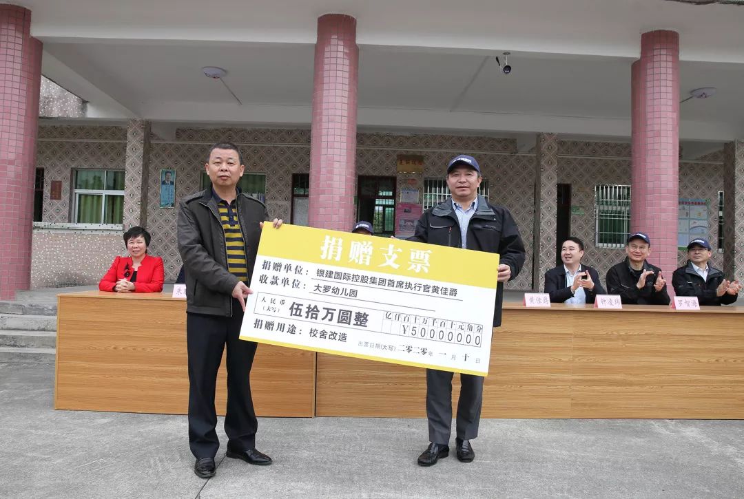 捐贈儀式上,集團(tuán)首席執(zhí)行官黃佳爵個人向大羅小學(xué)捐贈了50萬元,集團(tuán)公司其它成員籌集善款17萬元整。黃佳爵先生表示,他個人的捐款主要用于建設(shè)大羅幼兒園,希望孩子們從小就受到科學(xué)、優(yōu)質(zhì)的基礎(chǔ)教育,努力學(xué)習(xí),用知識改變命運(yùn)。
